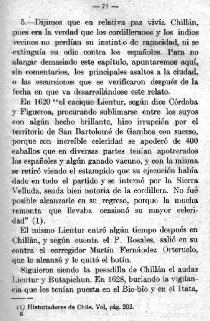 LOS ATAQUES DEL CACIQUE LIENTUR EN CHILLAN, 1620 - 1628